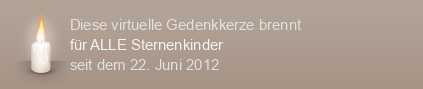 Am 22.06.2012 wurde diese virtuelle Gedenkkerze für ALLE Sternenkinder auf Kerze-anzuenden.de entzündet und damit ein einzigartiges Online-Gedenken erstellt.
