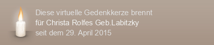 Eine Kerze für Christa Rolfes Geb.Labitzky