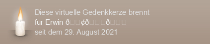 Am 29.08.2021 wurde diese virtuelle Gedenkkerze für Erwin 😢🌈🙏 auf Kerze-anzuenden.de entzündet und damit ein einzigartiges Online-Gedenken erstellt.