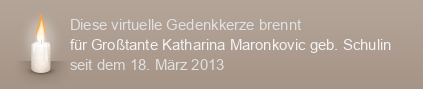 Eine Kerze für Großtante Katharina Maronkovic geb. Schulin