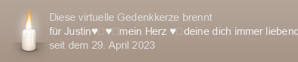 Am 29.04.2023 wurde diese virtuelle Gedenkkerze für Justin♥️♥️mein Herz ♥️deine dich immer liebende Mama ♥️ (im Tierkreiszeichen Skorpion geboren) auf Kerze-anzuenden.de entzündet und damit ein einzigartiges Online-Gedenken erstellt.