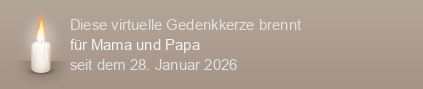 Am 28.01.2026 wurde diese virtuelle Gedenkkerze für Mama und Papa auf Kerze-anzuenden.de entzündet und damit ein einzigartiges Online-Gedenken erstellt.
