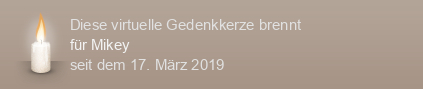 Am 17.03.2019 wurde diese virtuelle Gedenkkerze für Mikey auf Kerze-anzuenden.de entzündet und damit ein einzigartiges Online-Gedenken erstellt.