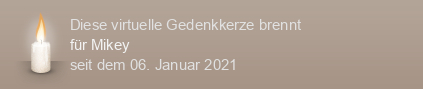 Am 06.01.2021 wurde diese virtuelle Gedenkkerze für Mikey auf Kerze-anzuenden.de entzündet und damit ein einzigartiges Online-Gedenken erstellt.