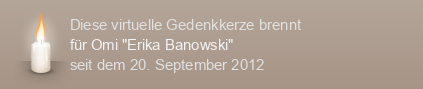 Jetzt ist es schon fast ein Jahr her, und noch immer kann und will ich es nicht glauben,dass du nie wieder kommst. Ich sitz oft ewig vor deinem Bild und habe Deine Stimme in meinen Ohren und dann wäre es, als wärst du wieder da. Ich vermisse unsere Allwöchentlichen Samstagsfrühstücke. Ich vermisse deine helfenden Worte,wenn es mir schlecht ging. Mein Sohn vermisst seine Tic-Tac-Oma. Es vergeht nicht einen Tag,an dem ich nicht an dich denke..... Ich liebe und werde dich immer lieben. Und irgendwann sehen wir uns wieder. Hoffe ich. Bestell Opa liebe Grüße....In liebe deine Enkelin Loreen und Urenkel Gerome.......