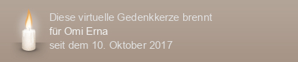 Am 10.10.2017 wurde diese virtuelle Gedenkkerze für Omi Erna auf Kerze-anzuenden.de entzündet und damit ein einzigartiges Online-Gedenken erstellt.