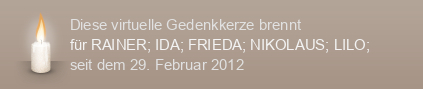 Eine Kerze für RAINER; IDA; FRIEDA; NIKOLAUS; LILO;