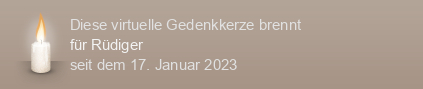 Am 17.01.2023 wurde diese virtuelle Gedenkkerze für Rüdiger auf Kerze-anzuenden.de entzündet und damit ein einzigartiges Online-Gedenken erstellt.