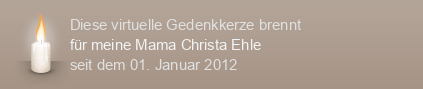 Meine süße Knuddelmama,eine Stunde ist das neue Jahr jetzt alt und wieder eine Stunde in der ich dich unheimlich vermisst habe und meine Gedanken nur bei dir waren. Ich liebe dich so sehr und weiß mit meinem Schmerz nicht wohin. Es hat hier geregnet und ich dachte das du wohl weinst weil du nicht bei uns sein kannst und ich hab geweint weil du mir so sehr fehlst Mama!!!!! Marcel und ich haben eine Rakete nur für dich gezündet- hast du es gesehen? Lass es dir gut gehen wo immer du jetzt auch jetzt bist: Hab dich ganz doll lieb. Deine Sabine